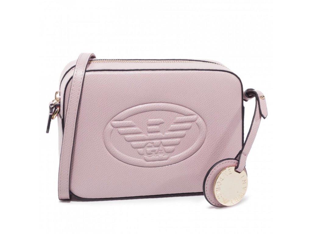 Dámská crossbody kabelka Emporio Armani v jemné růžové barvě. Kabelka je vyrobena z kvalitní ekologické kůže. Ideální městský doplněk, je vhodná k elegantním i s k sportovním outfitům. Zip i přívěšek s logem značky Emporio Armani jsou zlaté barvy. Přívěšek je navíc i odnímatelný. Rozměry: 20 x 14.5 x 7 cm.