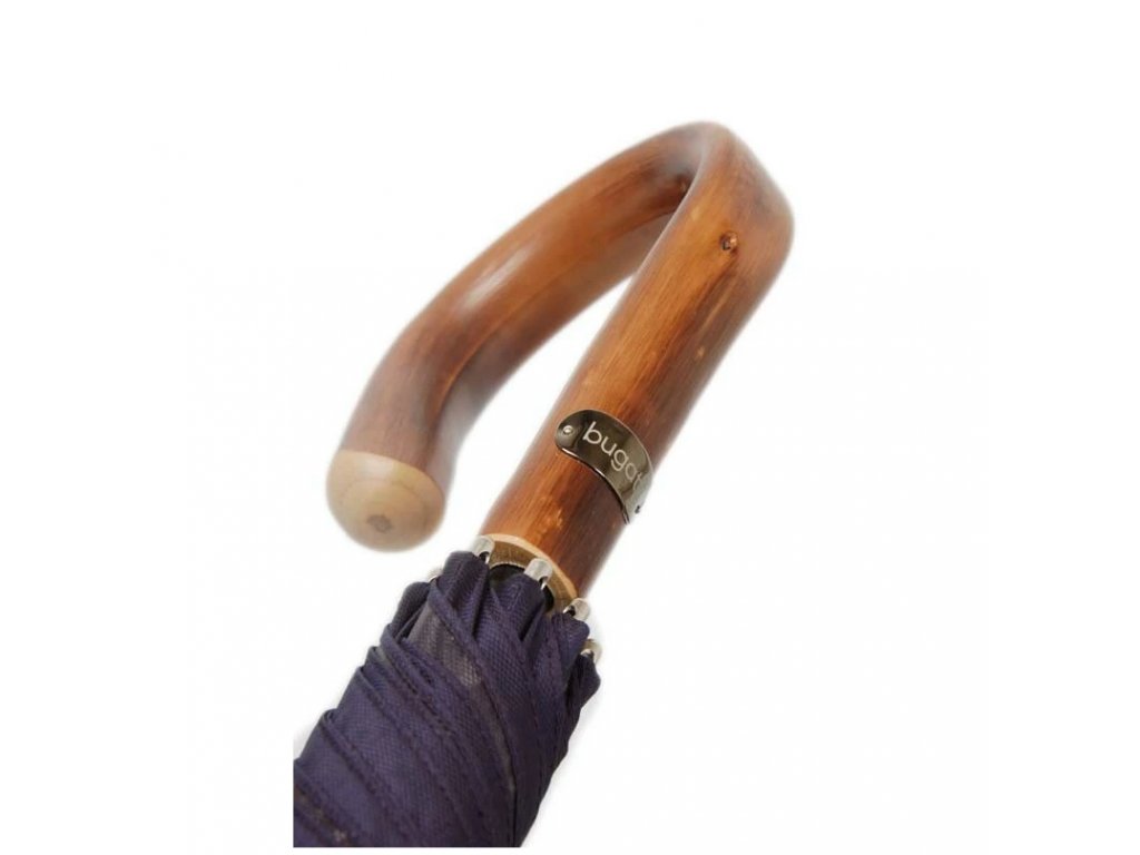 Elegantní pánský vystřelovací holový deštník od trendy značky Bugatti. Konstrukce ze sklolaminátu a dřeva větruodolná konstrukce. Veliká střecha. Polyesterový potah je odolný proti změnám vlhkosti a teplot, nesráží se.