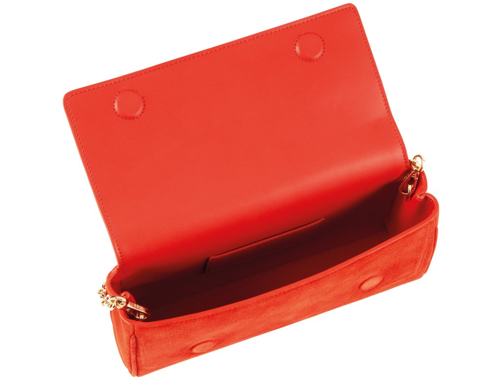 Červená senzace: dodá vašim večerním outfitům moderní nádech s naší psací kabelkou „Doreen“. Použití červeného semiše zdůrazňuje jednoduchou siluetu tohoto doplňku. Pod ozdobným zlatým emblémem Högl má magnetické zapínání, takže ji lze snadno otevřít jednou rukou. Tato kabelka je praktickým poutkem, který dodá vašim outfitům nádech elegance a zároveň udrží vaše nezbytnosti na večer po ruce. Své karty si bezpečně uložte do malé vnitřní kapsy. Ať už ji nosíte v ruce nebo přes rameno s odnímatelným řetízkem, tato kabelka je skutečně všestranná.