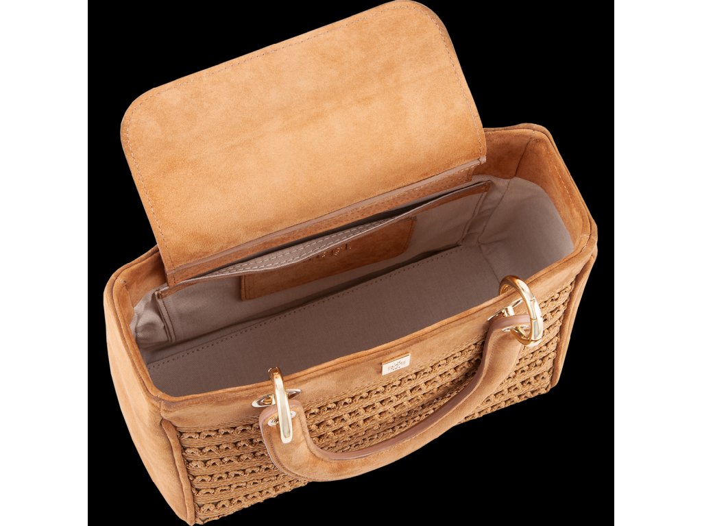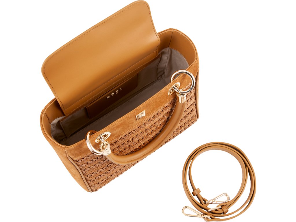 Dodá vašim outfitům nádech elegance v kombinaci s naší kabelkou „Raffia“ v velbloudí barvě. Design je definován propracovanými, prošívanými detaily z rafiového copu, které kabelce dodávají letní nádech. Decentní dekorativní emblém Högl a kovové detaily dotvářejí vzhled této elegantní kabelky s malou vnitřní kapsou. Noste tuto exkluzivní kabelku s našimi perfektně sladěnými balerínkami „Bella“ nebo lodičkami s remienkem „June“ – které se také vyznačují exkluzivními makramé prvky – pro ztělesnění letní elegance. Ať už ji kombinujete s kalhotami nebo sukní přes den, nebo s overalem či šaty večer – tento všestranný doplněk je vhodnou volbou pro každou příležitost. Díky odnímatelnému ramennímu popruhu se design „Raffia“ okamžitě promění v exkluzivní kabelku přes rameno.