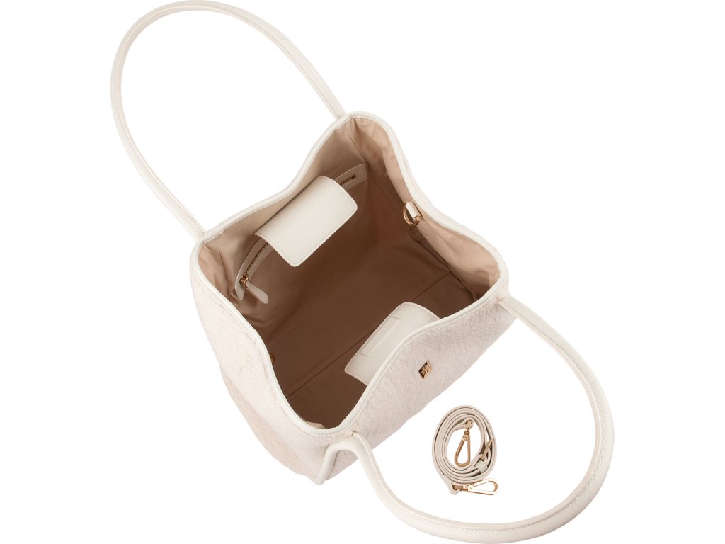 Monochromatický design s hravým materiálem s plyšovým vzhledem dělá z kabelky „Judy“ sofistikovaného stylového partnera. Přírodní barvy, jako je velbloudí nebo krémová, a filigránský dekorativní detail dotvářejí celkový vzhled. Další ramenní popruh umožňuje nošení jako crossbody kabelky. Malá kapsa na zip uvnitř chrání vaše cennosti a zároveň umožňuje uložení drobných nákupů nebo dokumentů do práce. Vypadá obzvláště krásně v kombinaci s našimi plyšovými teniskami „Fluffy“ a bundou „Liz“.