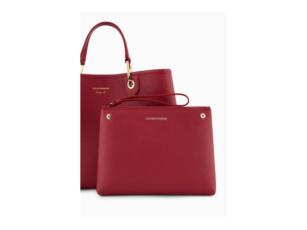 Dámská klasická shopper kabelka Emporio Armani z edice MyEA bags. Kabelka je vyrobena z jemné strukturované ekologické kůže a má dlouhý textilní popruh, takže jí můžete nosit i přes rameno. Vevnitř se nachází přihrádka na zip, která je odepínatelná a skvěle poslouží i mimo kabelku jako kosmetická taška nebo taška na doklady. Rozměry: 37.5 x 27 x 11.5 cm.