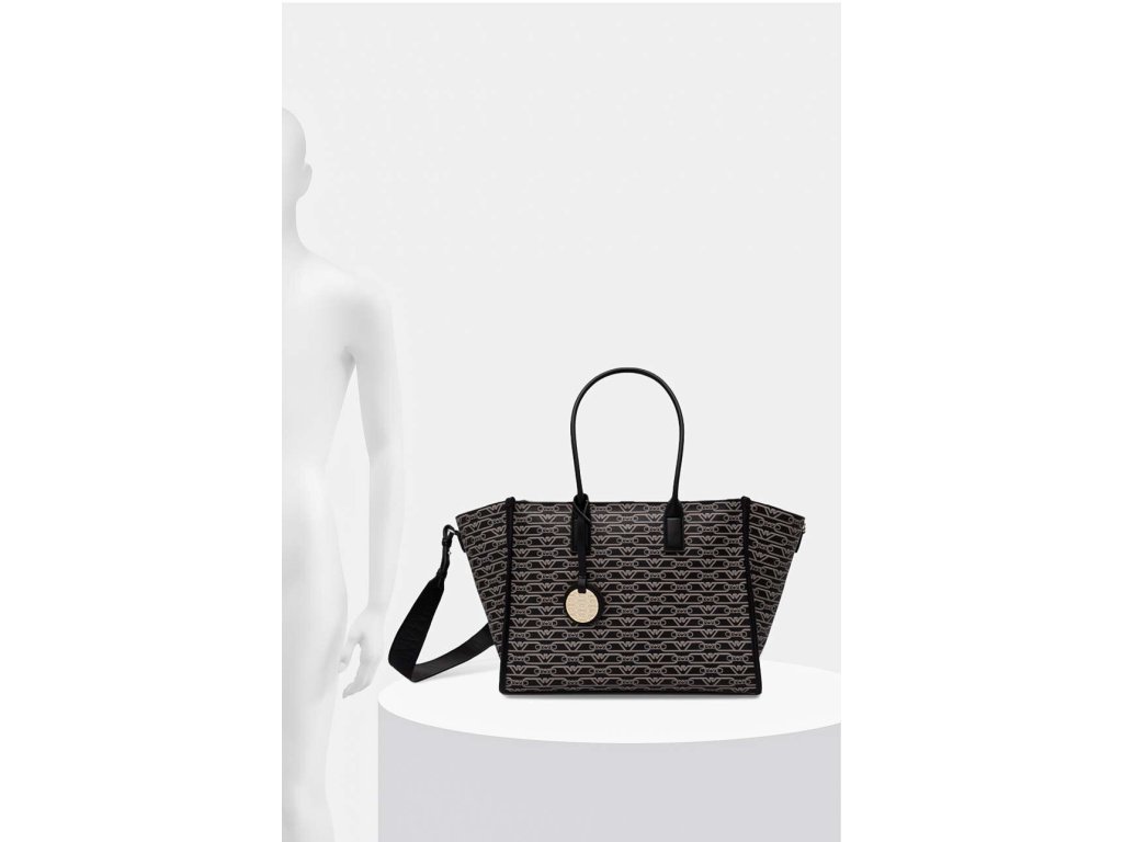 Dámská kabelka Emporio Armani s unikátním logo potiskem. Kabelka má dvě klasické delší rukojeti, takže ji můžete nosit na rameni, a také dlouhý nastavitelný textilní popruh. Kabelka je vyrobena z jemně strukturované ekologické kůže s canvas povrchem. Je kompatibilní s formátem A4. Rozměry: 33 x 26 x 16 cm.