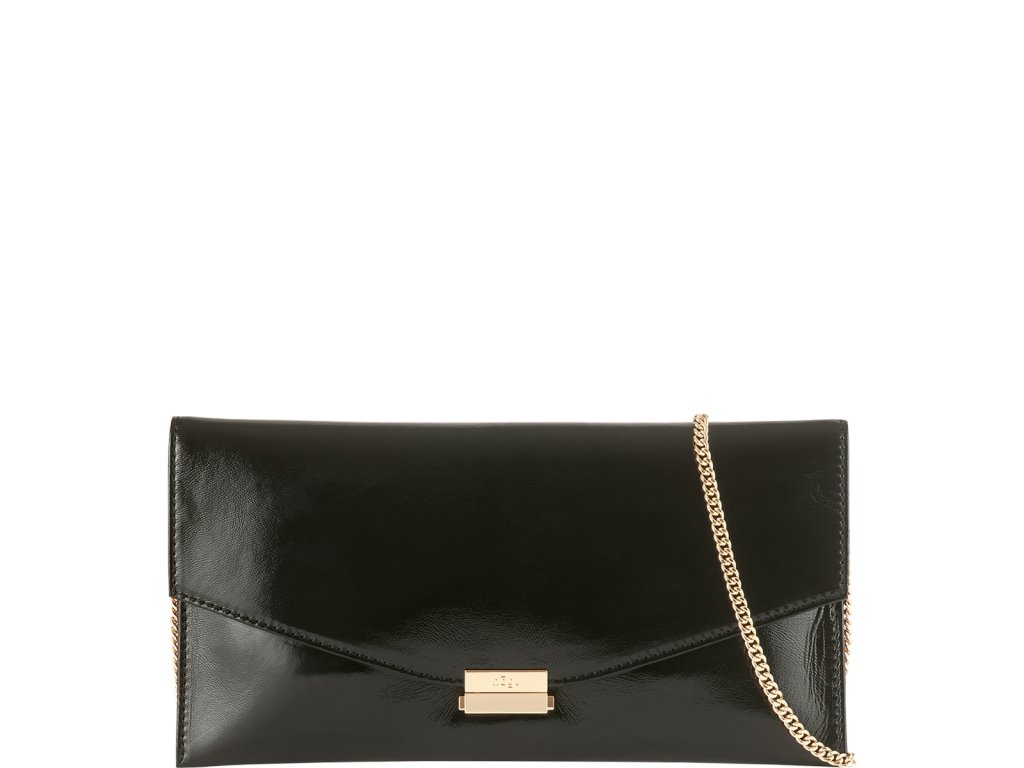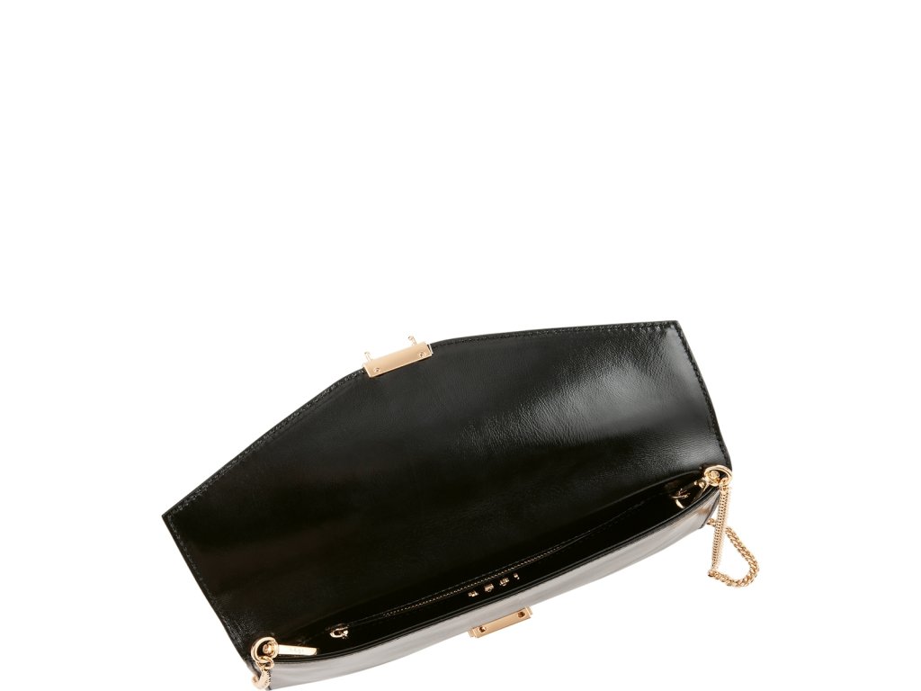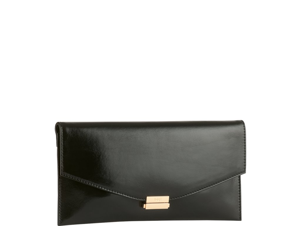 Dámské psaníčko Högl z jemné hladké jehněčí kůže s lesklým, leštěným povrchem. Jednoduchý design a materiálové provedení dodávají psaníčku elegantní, formální a luxusní vzhled. Má zlatý řetízek, takže kabelku můžete nosit i přes rameno jako crossbody. Je ideálním doplňkem na různé večerní akce. Rozměry: 27 x 4 x 15 cm.