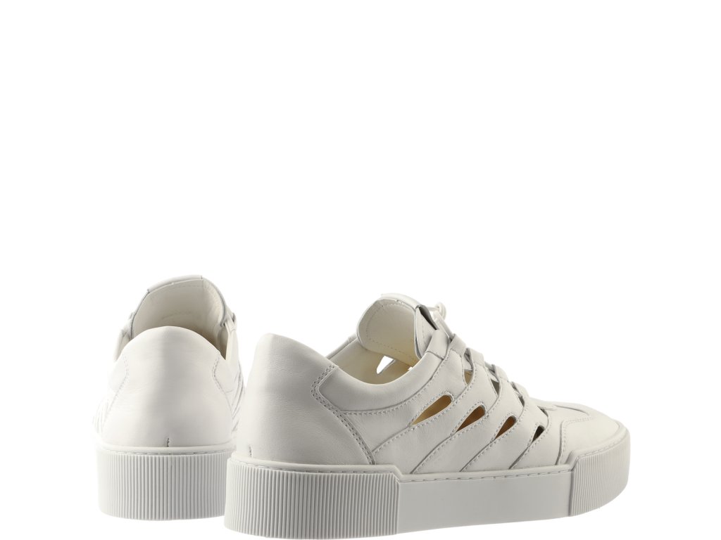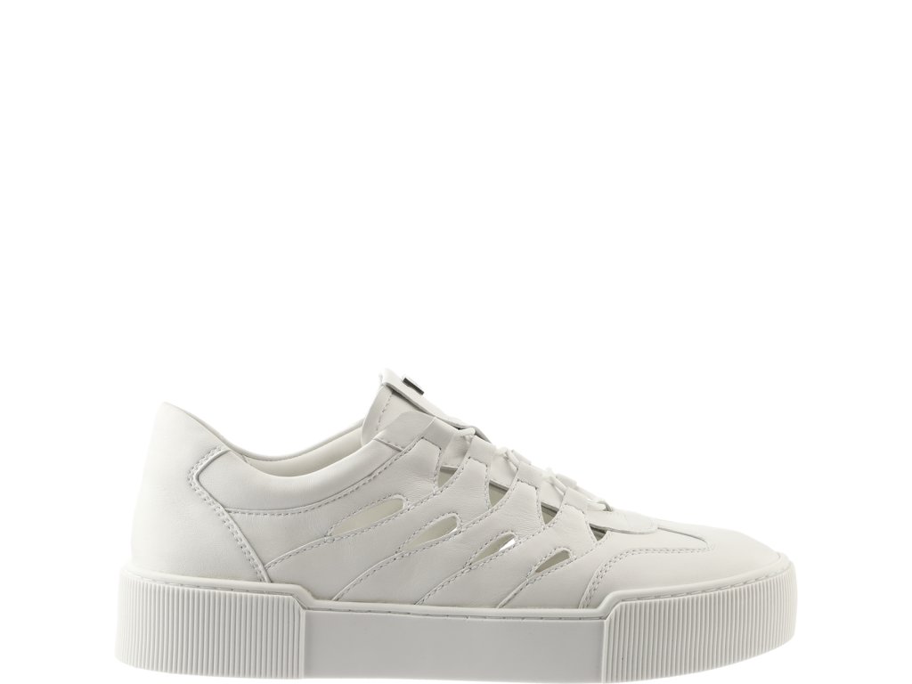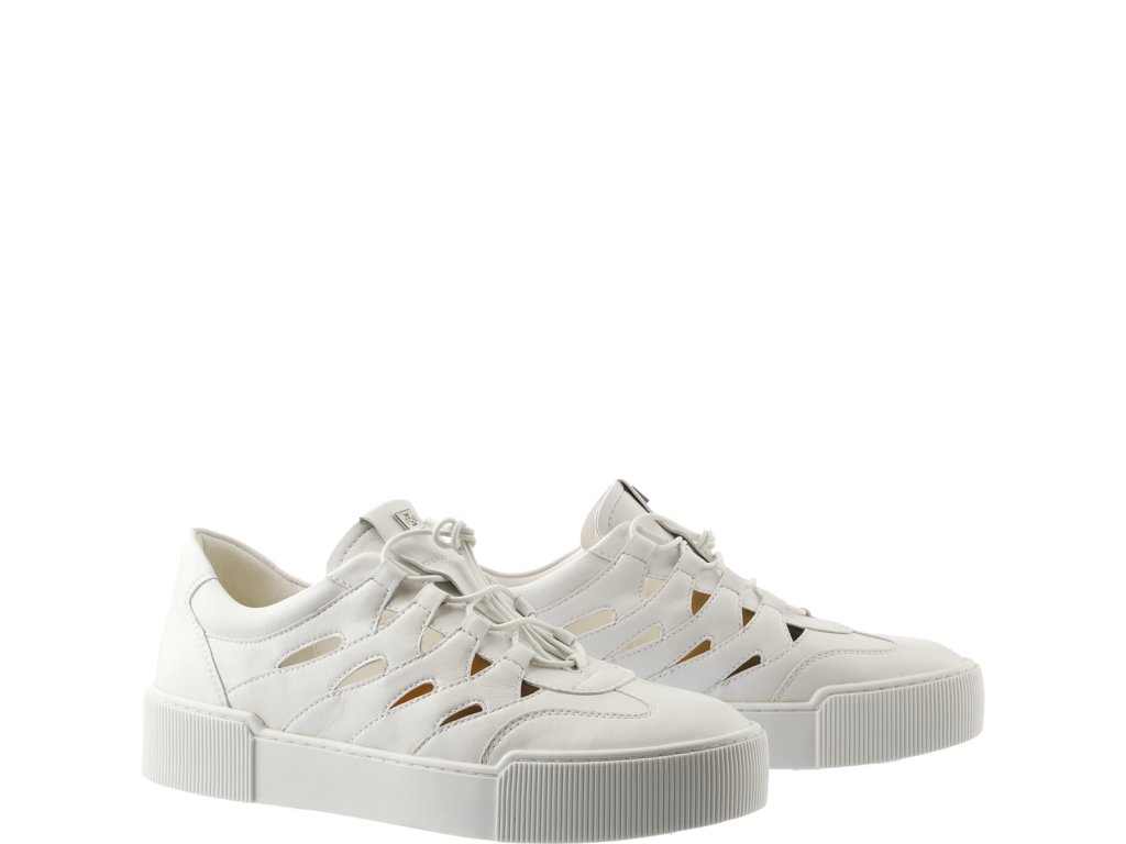 Letní výřezy dodávají těmto minimalistickým bílým teniskám Högl "Connie" nádech extravagance. Chladivá silueta z vysoce kvalitní hladké kůže s drážkovanými podrážkami má monochromatický vzhled. Zatímco elastické šněrování usnadňuje nazouvání a zdůrazňuje atletický vzhled, malé výřezy dodávají teniskám ženský a letní nádech. Noste tyto udržitelně vyrobené dámské tenisky s letními šaty, kraťasy nebo i s džínami. Měkká kožená podšívka a paměťové pěnové vložky, které se s každým krokem přizpůsobí tvaru vašich nohou, jsou zodpovědné za bezkonkurenční pohodlí těchto dámských bot vyrobených v Evropě.