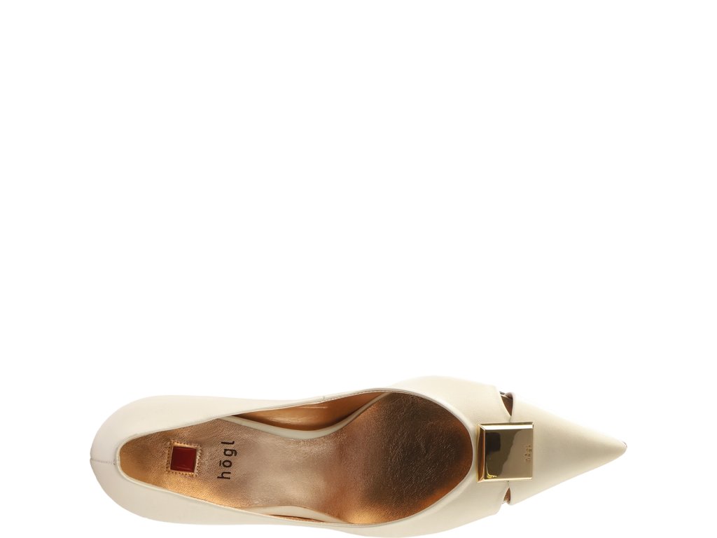Klasická elegance s moderní siluetou: naše udržitelné lodičky „Romy“ jsou vyrobeny z téměř bílé kůže s matným povrchem. Zaoblené podpatky a přední část, které zaujmou sofistikovanými výřezy a zlatými ozdobnými prvky, jsou moderními detaily. Uvnitř měkká kožená podšívka zajišťuje úžasnou úroveň pohodlí při nošení, kterou umocňuje protiskluzová podrážka. Sofistikovaná interpretace bílých lodiček – tyto klasické, krásné dámské boty, interpretované společností Högl moderním způsobem, si budete užívat ještě dlouho. Tyto lodičky patří do exkluzivní edice Vienna Edition, která kombinuje klasickou eleganci s moderním vzhledem a zaměřuje se tak na rakouské dědictví a dlouhou tradici Höglu.