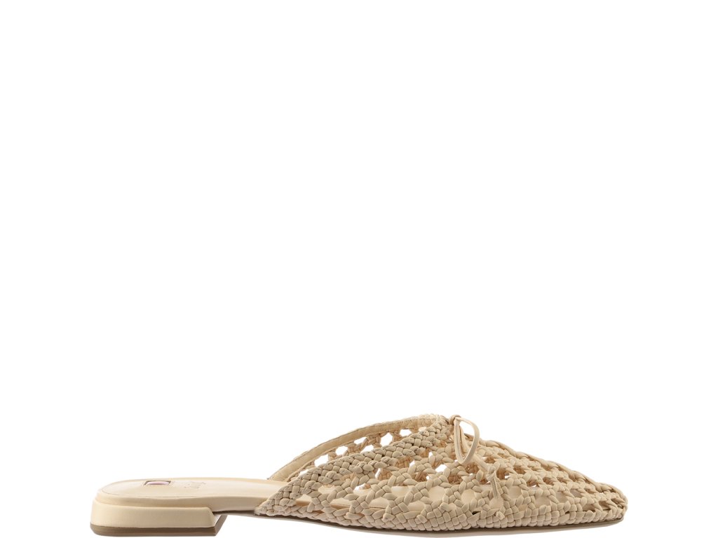 Jemná silueta se setkává s ženským tkaným vzhledem: naše pantofle "Gina" v jemném krémovém odstínu. Tkaná kožená přední část z nich dělá letní poutač. Sofistikovaný materiál je poddajný a zároveň poskytuje vynikající oporu. Malé mašle jsou hravým detailem, který zdokonaluje design. Miniaturní podpatky přispívají nejen k vysokému pohodlí při nošení, ale také k elegantnímu vzhledu. Noste tyto pantofle Högl vyrobené z udržitelných zdrojů s květinovými šaty pro perfektní sváteční outfit.