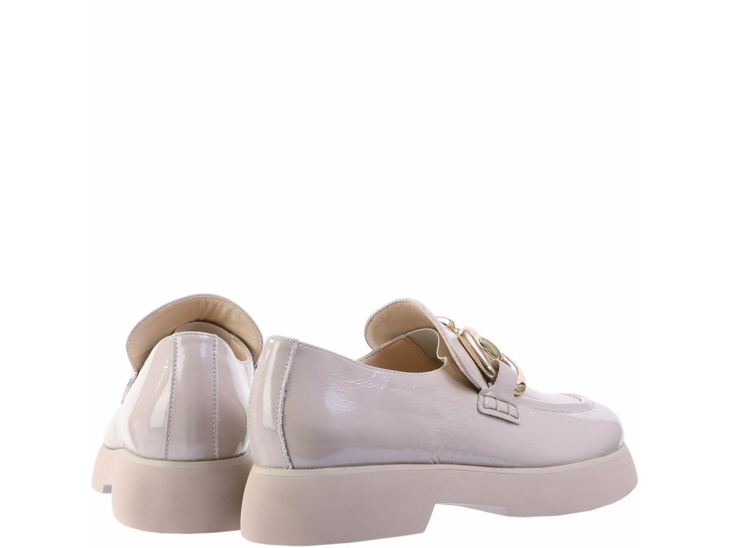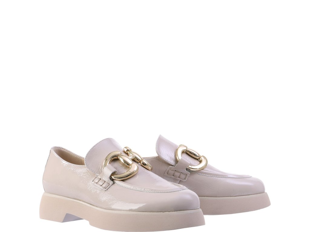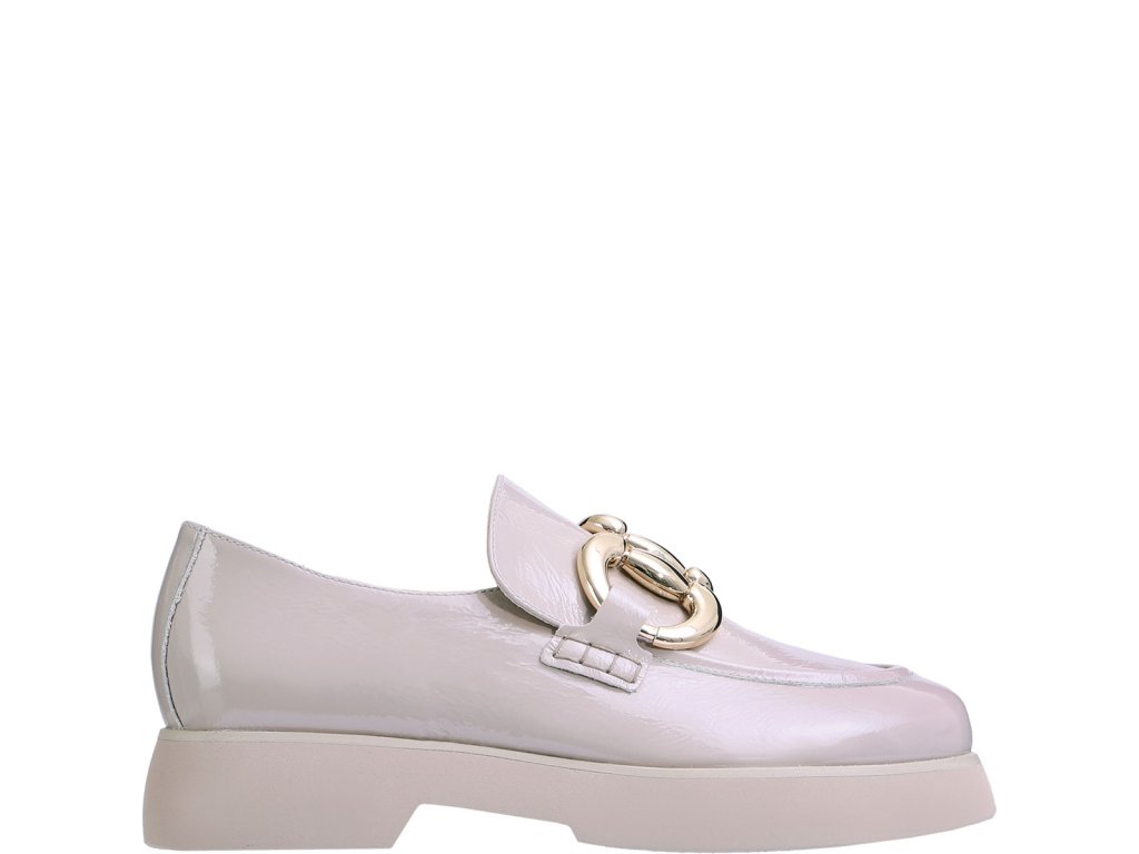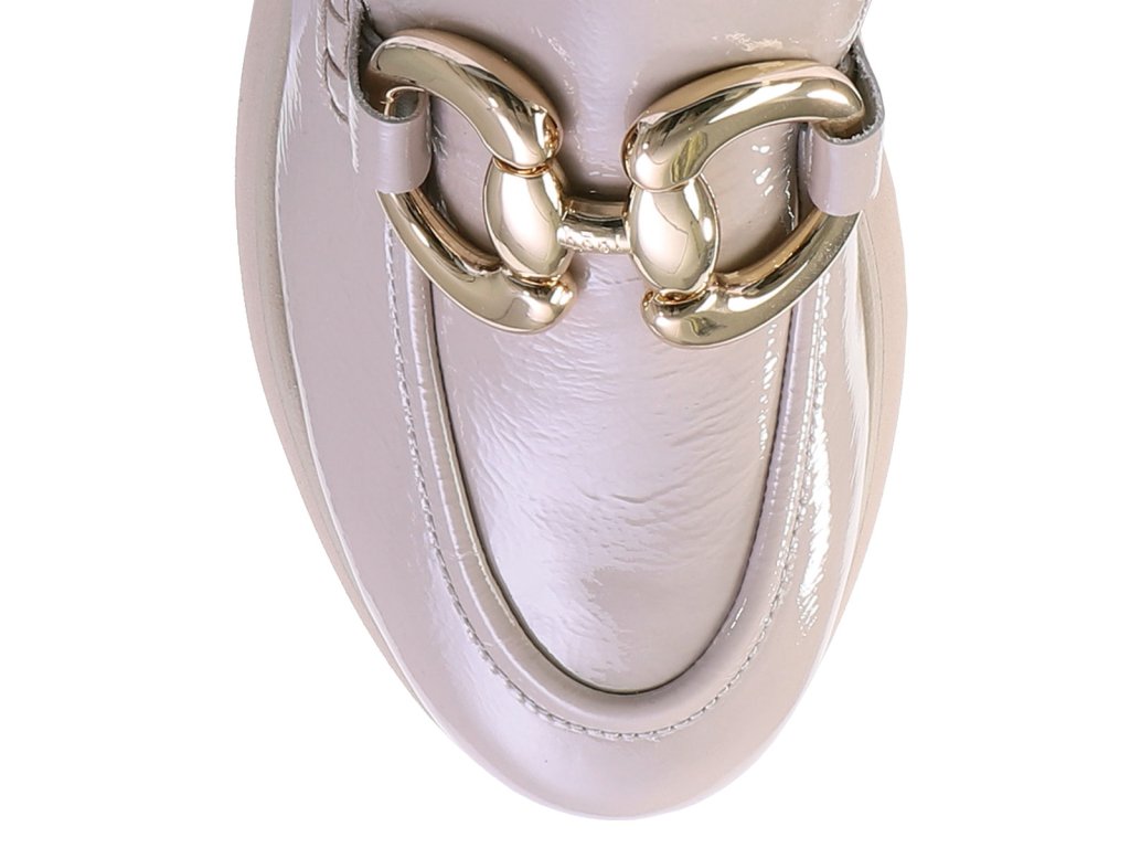 Dámské mokasínky Högl na vysoké platformě. Obuv je vyrobena z jemné lakované kůže. V přední části se v oblasti nártu nachází zlatá kovová spona. Výška platformy je 40 mm.