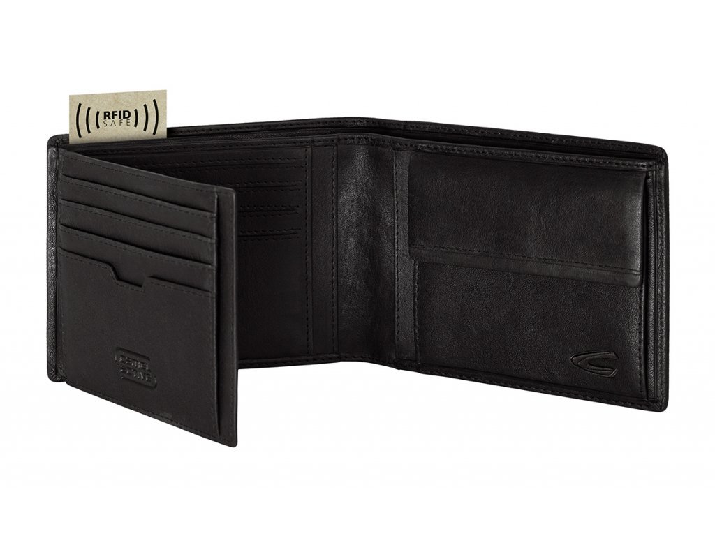Peněženka je vybavena RFID technologií zabraňující neoprávněnému zcizení dat a financí z platebních, bezkontaktních karet.