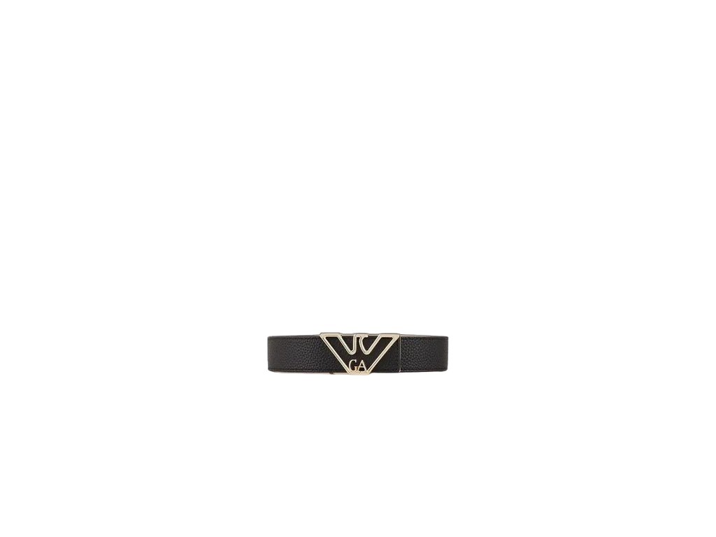 - Dámský pásek Emporio Armani se zlatou kovovou sponou ve tvaru loga značky. Pásek je vyroben z kombinace kůže (vnitřní materiál) a syntetických materiálů (vnější materiál). Díky jednoduchému designu a zlaté sponě je velmi elegantní a působí luxusním dojmem.