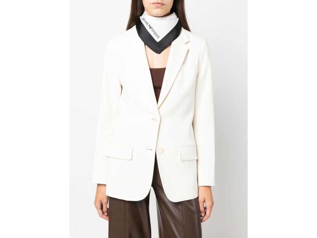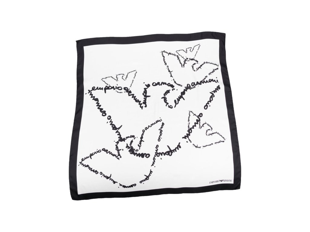 Dámský šátek Emporio Armani v černo-bílé barevné kombinaci. Materiál: 100% hedvábí. Rozměry: 89 x 89 cm.