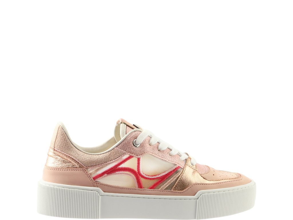 Dámské tenisky Högl na platformě. Tenisky jsou vyrobeny z kombinace textilu, kůže, broušené kůže a mají prvky s metalickým povrchem. Jsou lehoučké a ideální letní dny. Zapínání: šněrování. Výška platformy je 35 mm.