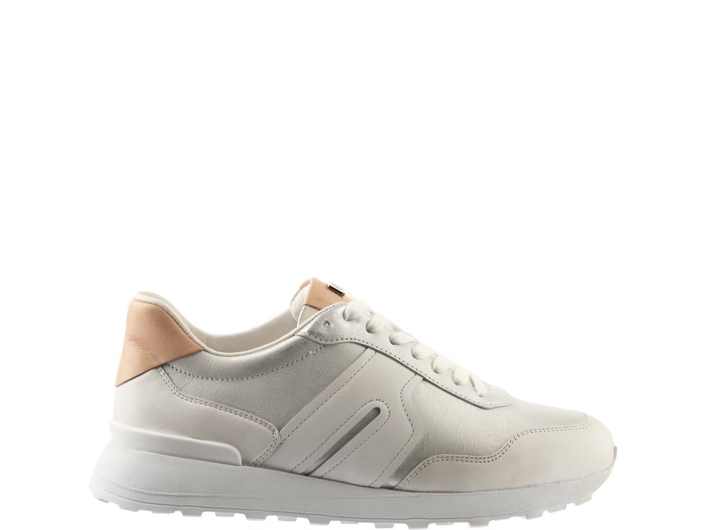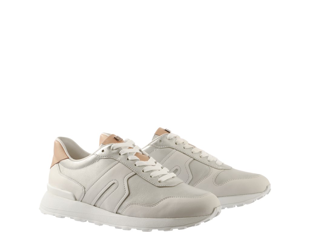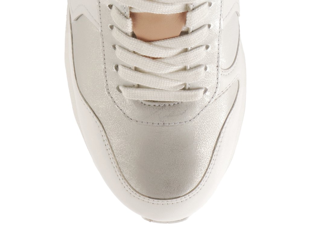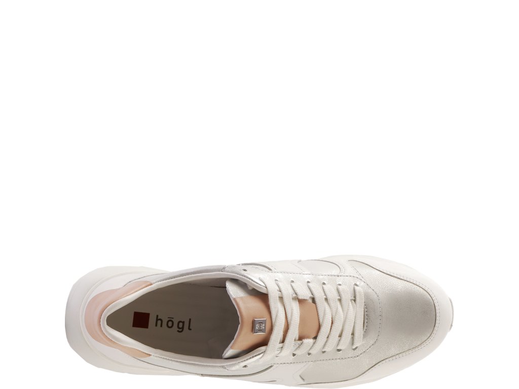 Dámské tenisky Högl v retro designu s platformou a protiskluzovou podrážkou. Obuv je vyrobena z jemné hladké jehněčí kůže s metalickými prvky ve stříbrné barvě. Výška platformy v patě je 25 mm.