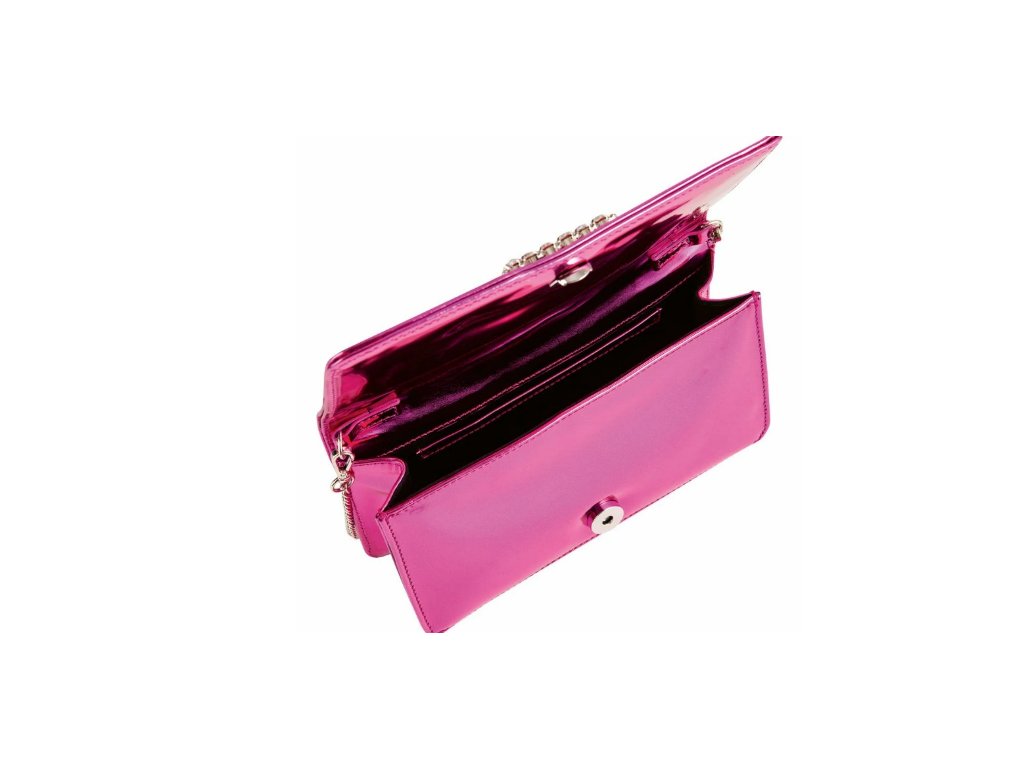 Dámské psaníčko Högl z plesové kolekce. Psaníčko je vyrobeno z jemné hladké kůže s metalickým povrchem. V přední části se nachází čtvercová spona se stříbrnými ozdobnými kamínky.