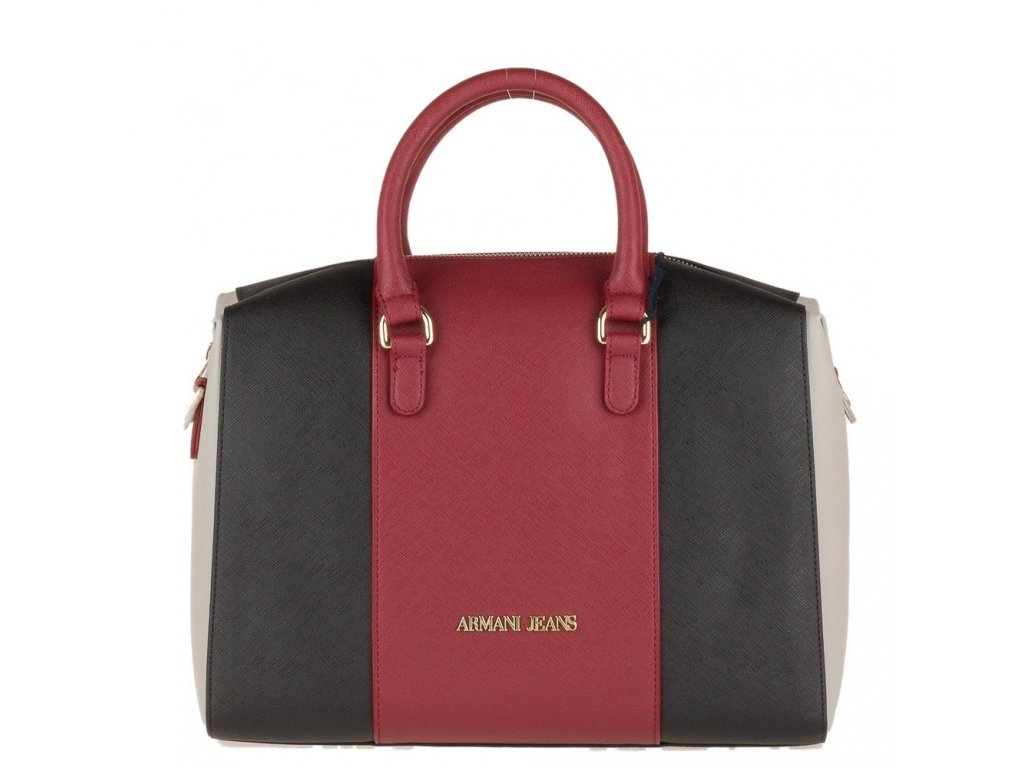 Dámská kabelka Armani Jeans kufříkového tvaru. Kabelka je vyrobena ze strukturované ekologické kůže. Kromě klasických držadel má i dlouhý nastavitelný popruh, díky kterému ji lze nosit i přes rameno. V přední spodní části se nachází malý nápis Armani Jeans. Lze umístit formát A4.